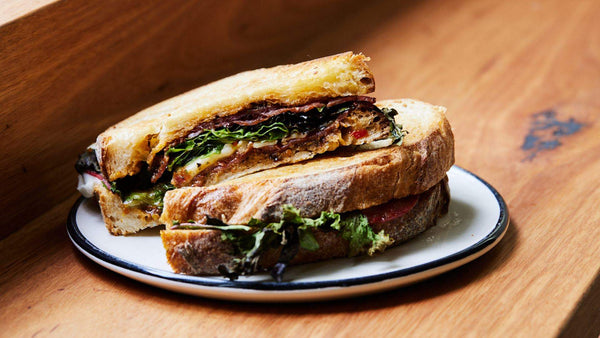 Options include a bacon and egg brekkie roll; seedy sourdough with mushrooms, goat’s curd, spinach and truffle oil; poached chicken sandwich with avocado, mixed greens and cheese and a miso cauliflower and quinoa salad with broccolini, kale, raisins, almonds and mixed leaves.